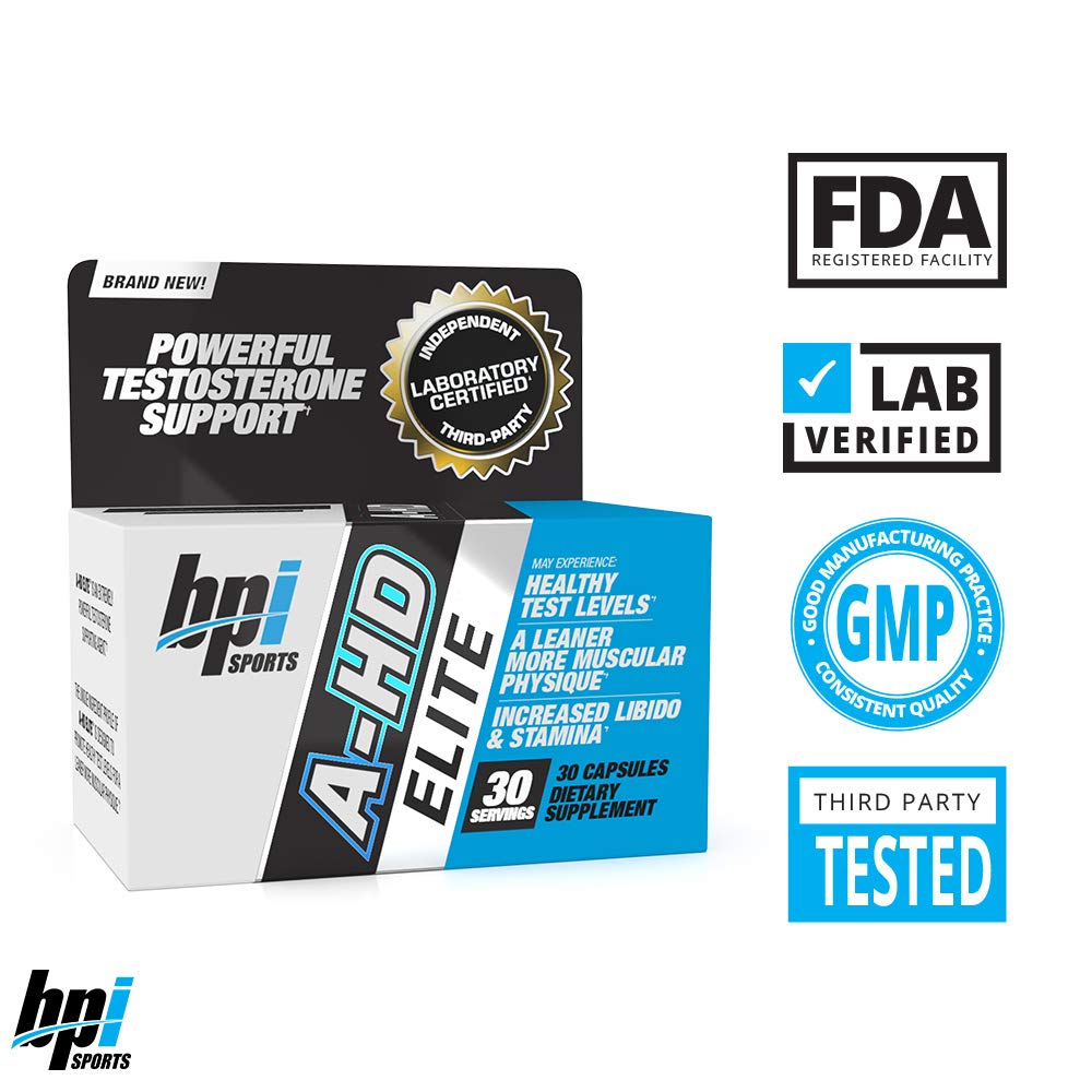 El A-HD Elite de BPI Sports es un suplemento diseñado para apoyar niveles saludables de testosterona en hombres, promoviendo una mayor masa muscular magra, libido y rendimiento físico. Este producto se presenta en cápsulas de 500 mg, con un envase que contiene 30 cápsulas, suficientes para un ciclo de 4 semanas.