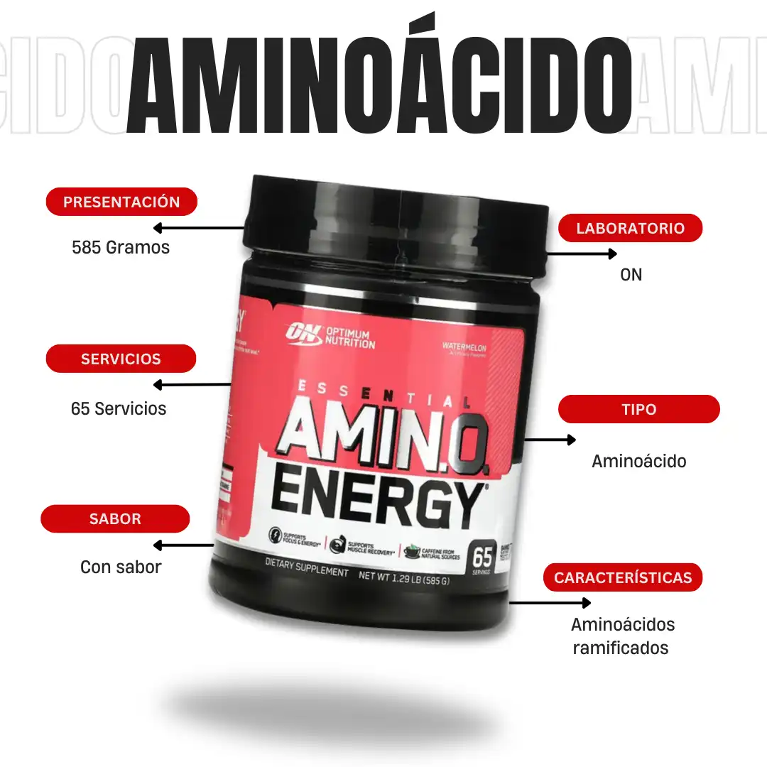 AMINO ENERGY de OPTIMUM NUTRITION es un compuesto de aminoácidos esenciales (EAA), en combinación con cafeína y extracto de te verde. Bajo en calorías y azucares.