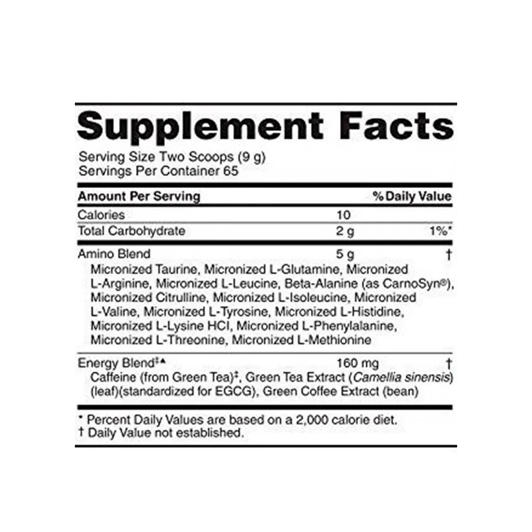 AMINO ENERGY OPTIMUM NUTRITION Tabla nutricional.