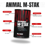 Animal M-Stak de Universal Nutrition está diseñado con un grupo de suplementos anabólicos no hormonales que puede ayudar al cuerpo a absorber más nutrientes y a desarrollar más masa muscular magra.
