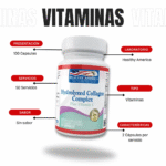 El Colágeno es una proteína esencial que constituye una gran parte de la piel, los huesos, los tendones y los ligamentos; proporciona estructura y elasticidad a estos tejidos. Mientras que la Vitamina C es un antioxidante que desempeña un papel crucial en la síntesis del colágeno.