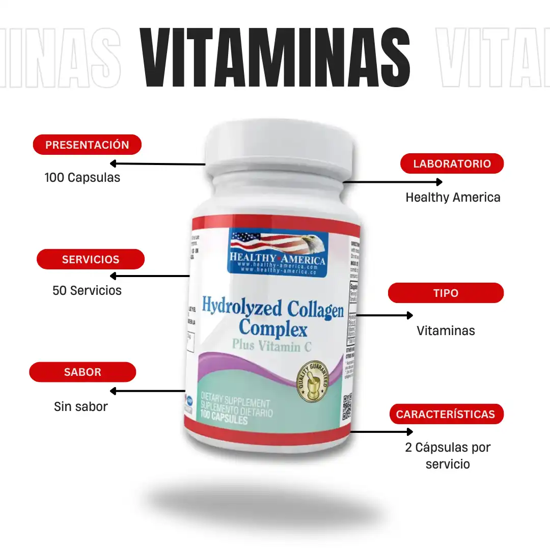 Colageno Hidrolizado + Vitamina C 100 Capsulas Healthy America.