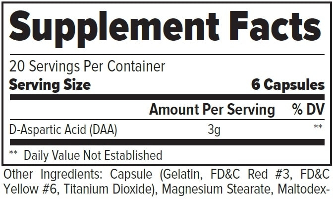 PURE TEST contiene 3 gramos de ácido D-aspártico por servicio. El ácido D-aspártico es un derivado de aminoácido que promueve la producción de testosterona en el cuerpo. Para obtener resultados óptimos, usa PURE TEST durante 12 semanas consecutivas, tomando un servicio de 6 cápsulas por la mañana al despertar o por la noche antes de acostarte.