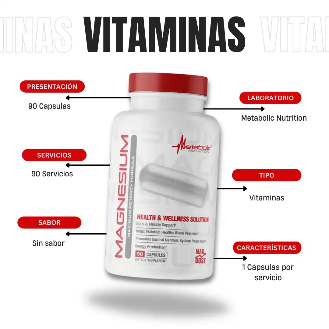 Magnesio 90 Capsulas Metabolic Nutrition.