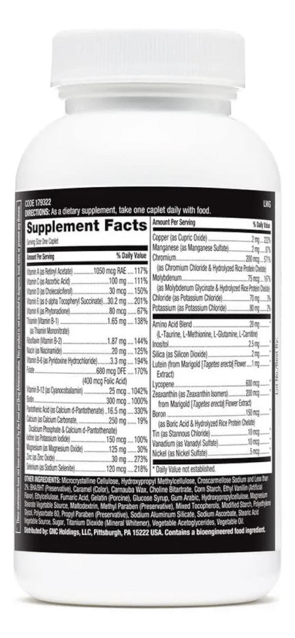 Solo para uso en adultos. No use el producto si está embarazada o lactando. Las mujeres en edad fértil deben limitar la ingesta diaria de vitamina A a 3000 mcg (excluye el beta-caroteno). Puede causar enrojecimiento y comezón. No tome el producto en ayunas. No use el producto si ha tenido un infarto de miocardio (ataque cardíaco). Consulte con un médico si tiene una afección médica o antes de comenzar una dieta o un programa de ejercicios. Mantenga fuera del alcance de los niños.
