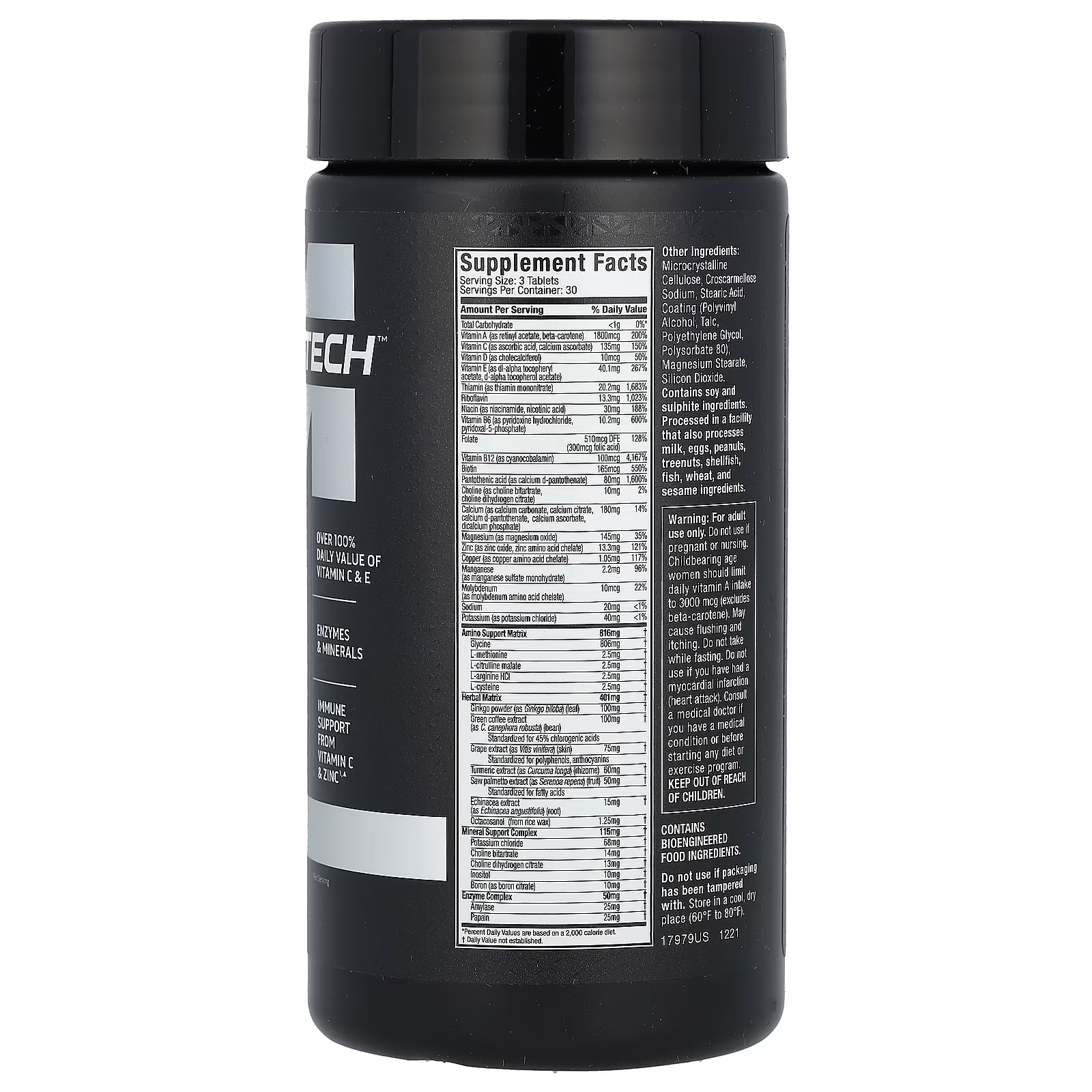 Cada porción aporta 18 vitaminas y minerales, que incluyen el 100 % o más de sus necesidades diarias de las vitaminas A, C, E, B6 y B12. Este producto está repleto de vitaminas y minerales esenciales, junto con una matriz de refuerzo con aminoácidos más una matriz de hierbas que hacen de esta una fórmula verdaderamente completa.
