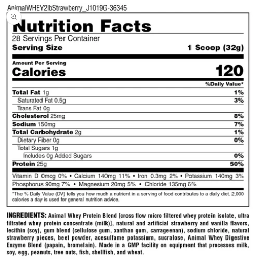 Proteína de suero de leche (Whey Protein): Animal Whey está basado en proteína de suero de leche concentrada y aislada, que es una de las mejores fuentes de proteína para la reparación y crecimiento muscular.