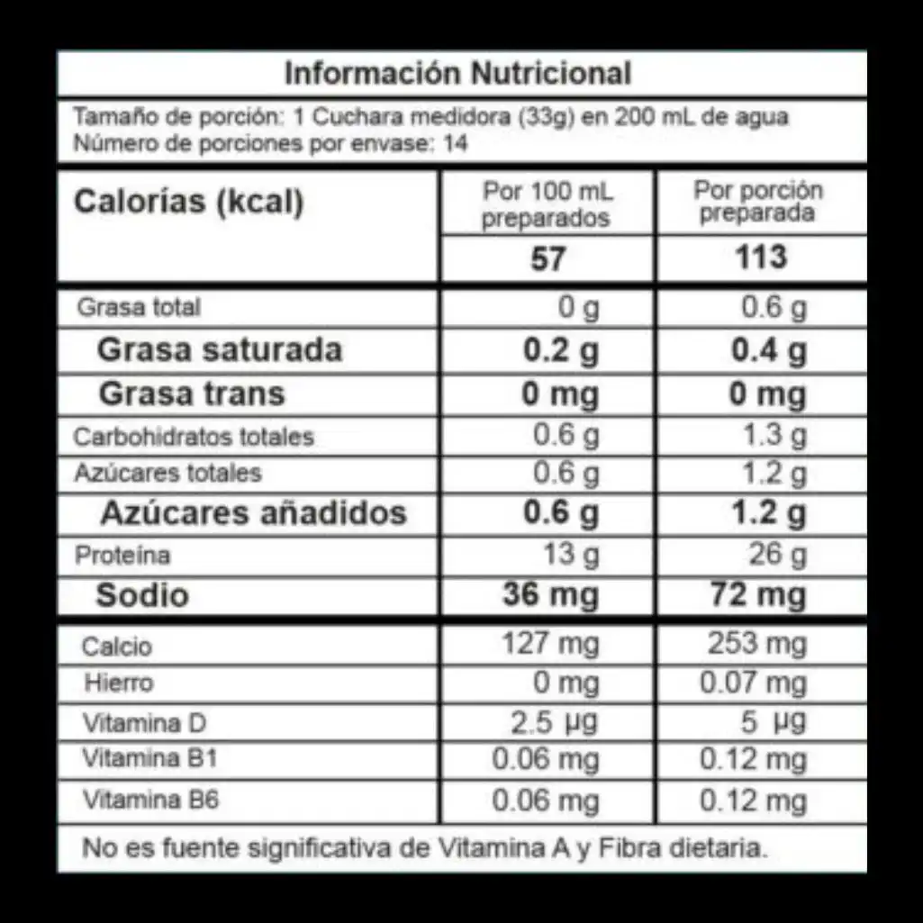 Mezclar 1 cuchara (33 g) del producto en 180 ml de agua, agítese hasta obtener un producto homogéneo, consumase una vez preparado.