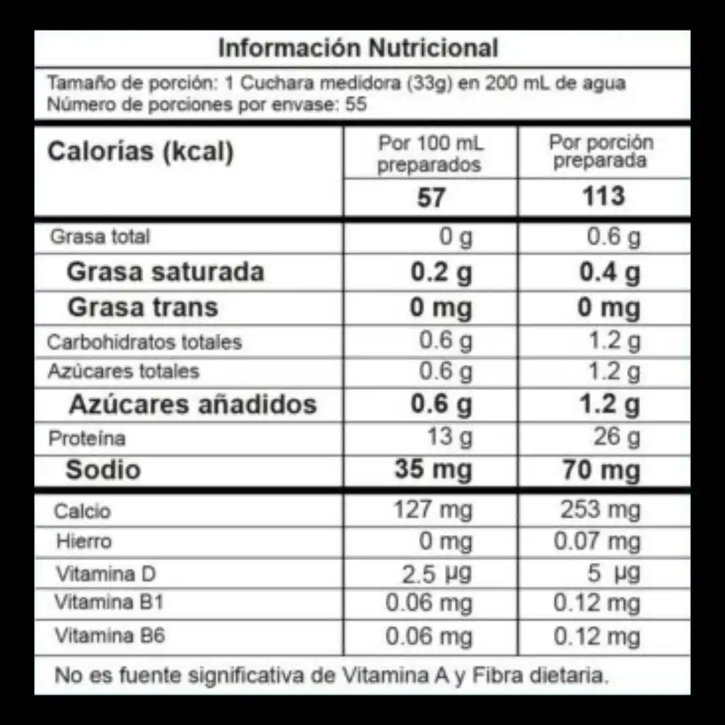 Alimento en polvo a base de proteína aislada de suero con L-LEUCINA, caseína micelar.