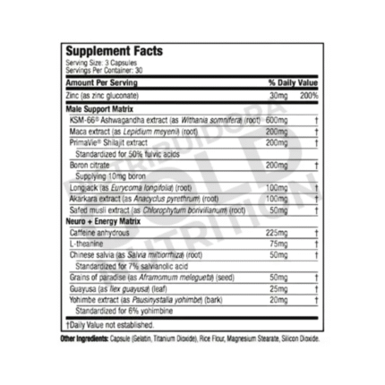 Otros ingredientes: Celulosa microcristalina, ácido esteárico (fuente vegetal), croscarmelosa de sodio, dióxido de silicio, estearato de magnesio, USP, carbonato de calcio.