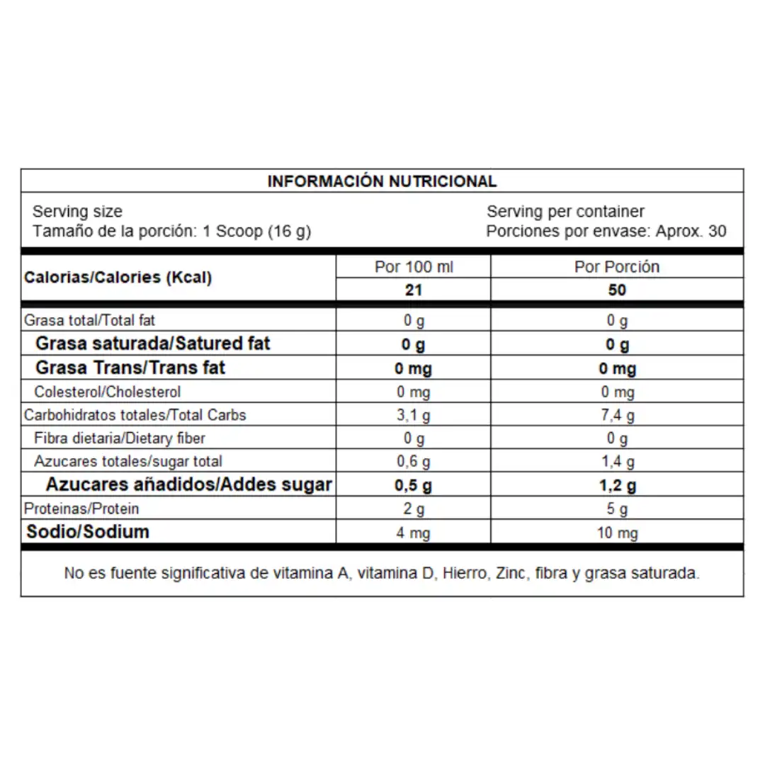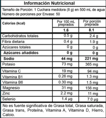 Mezclar 1 cucharada (16g) en 240 ml de agua, batir y consumir